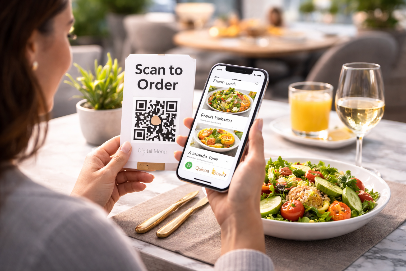 Generate QR codes for contactless ordering. Customers scan and browse your menu on their phones.